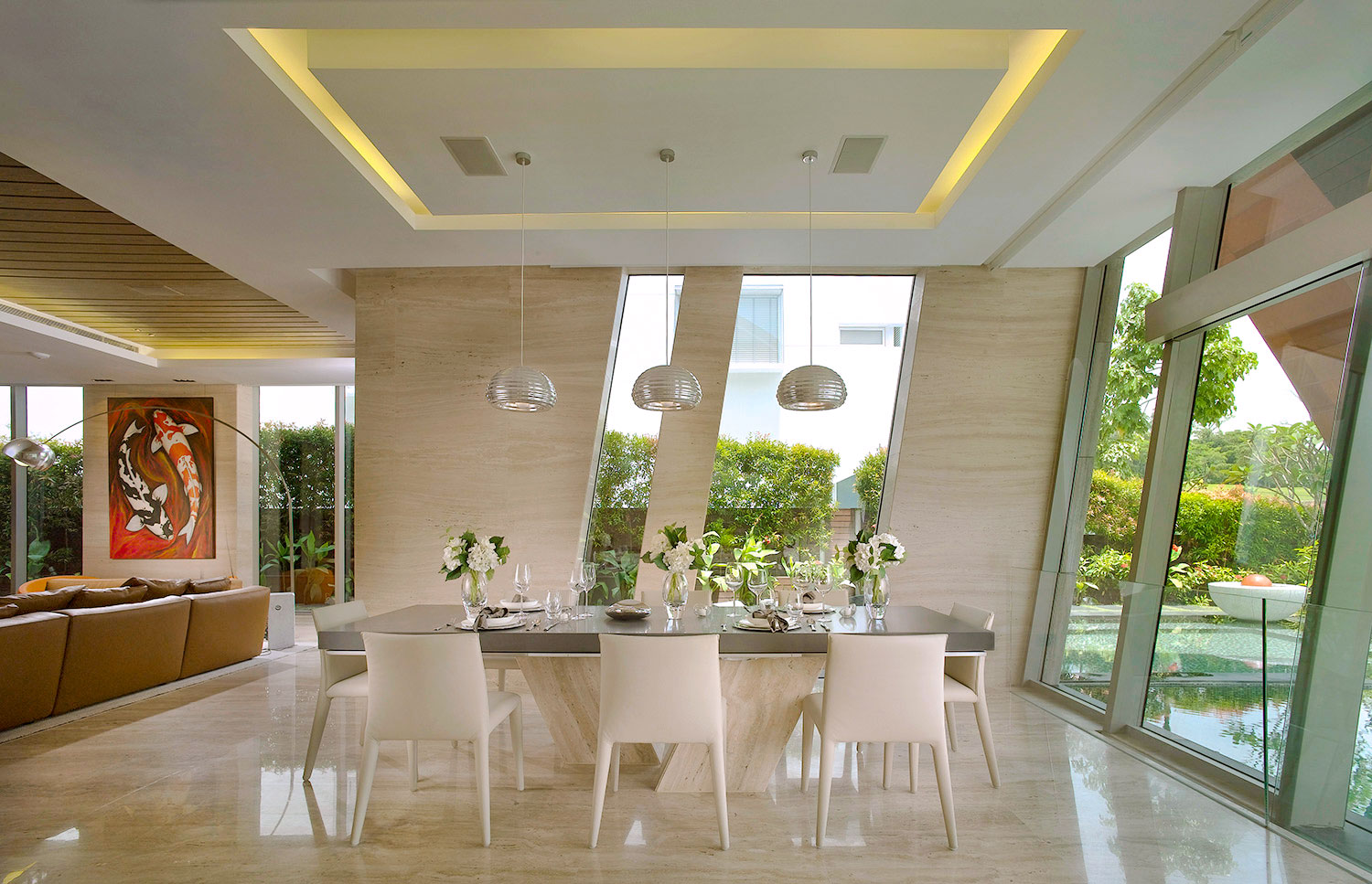 The two villas stand next to each other on the island of Sentosa, mirroring the images of one another with just minor variations: not identical twins, but close siblings. Like the sunrise, Villas Alba signal a start, having been designed at a time when few houses in Sentosa Cove showcased excellent architectural design.